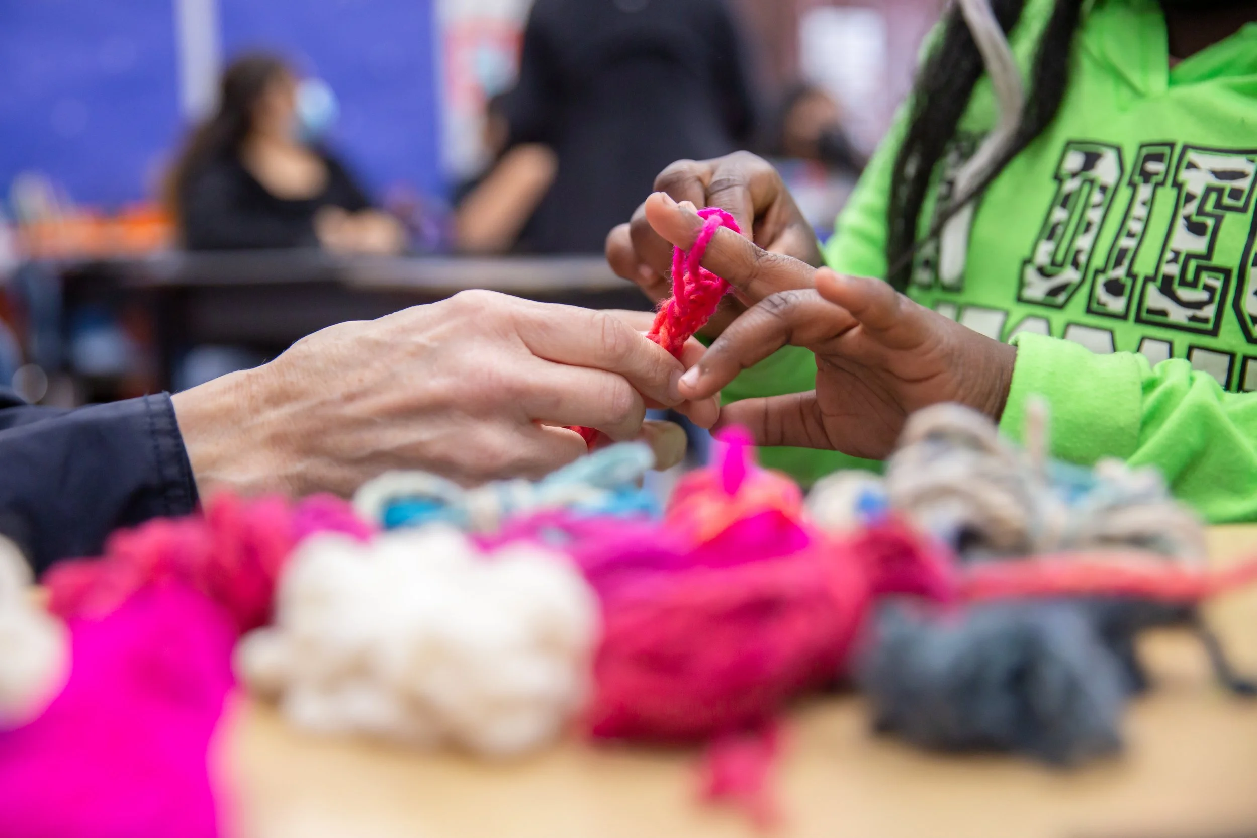 There is a meditative quality to choosing yarn colors, threading, and writing wishes. It creates space for self-awareness, calm reflection, and even conversations about what they hope for the world or for people they care about.